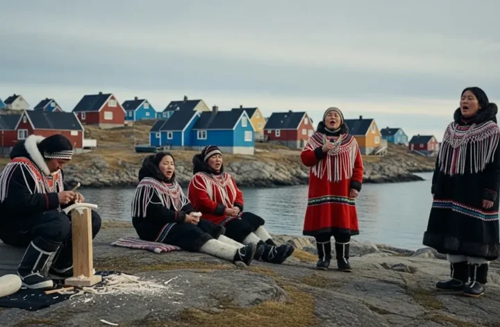 A cultura aqui não se cristaliza primeiro em museus ou festivais internacionais; ela respira no ato de narrar uma história, no canto que desafia o vento, no compartilhamento da caça, no entalhe de um osso, na palavra falada em kalaallisut. Antes de virar imagem, a cultura groenlandesa é gesto, som, deslocamento e sobrevivência.