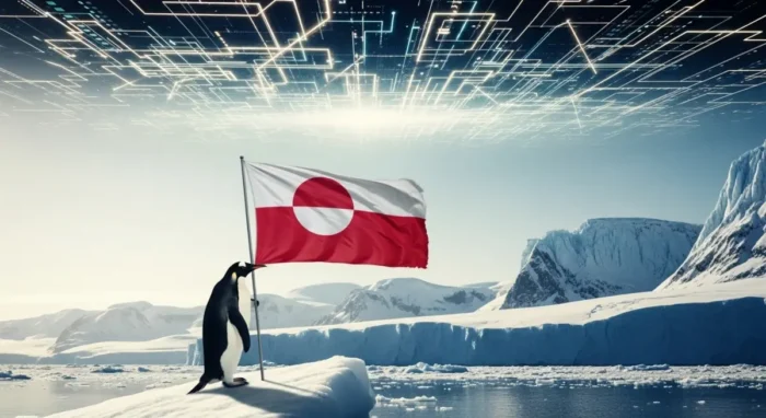 A mensagem subliminar é de uma anexação naturalizada, quase fofa, onde o ícone da dominação é apresentado por um emissário não ameaçador. O pinguim, assim, funciona como um signo flutuante que esvazia a gravidade geopolítica, recobrindo-a com a estética do absurdo e do espetáculo.