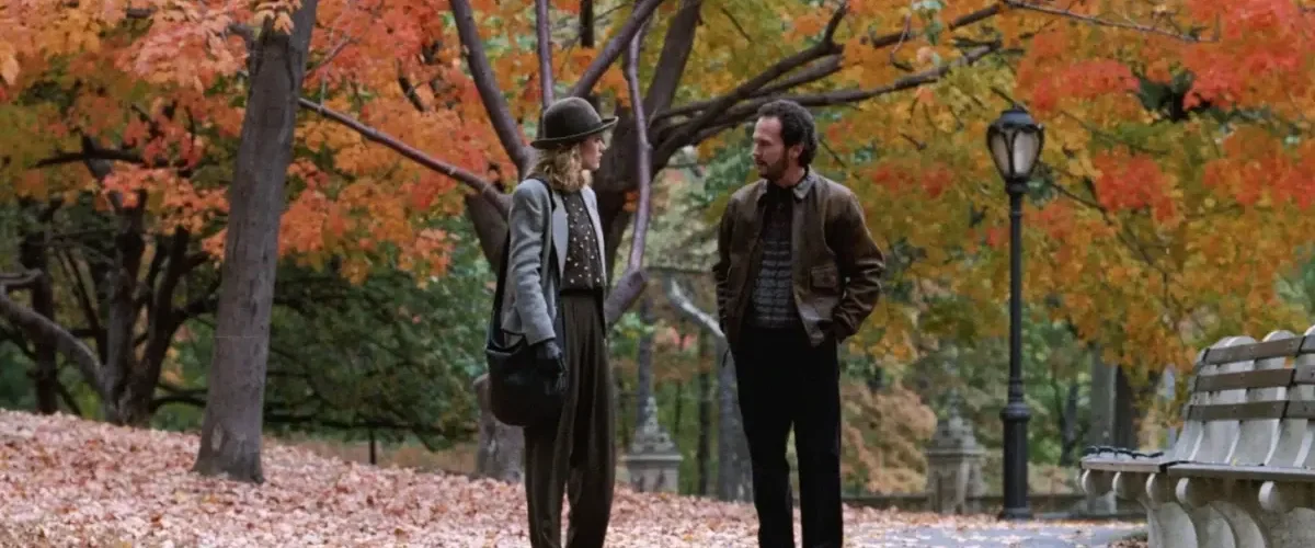 Nos primeiros encontros, Harry e Sally são paletas cromáticas e texturas em oposição. Ele, com seus blazers largos e cores terrosas, parece desleixado, ocupando o espaço com desprendimento. Ela, com seus tailleurs estruturados, cores primárias e cortes impecáveis, é a ordem personificada, uma defesa visual contra o caos.